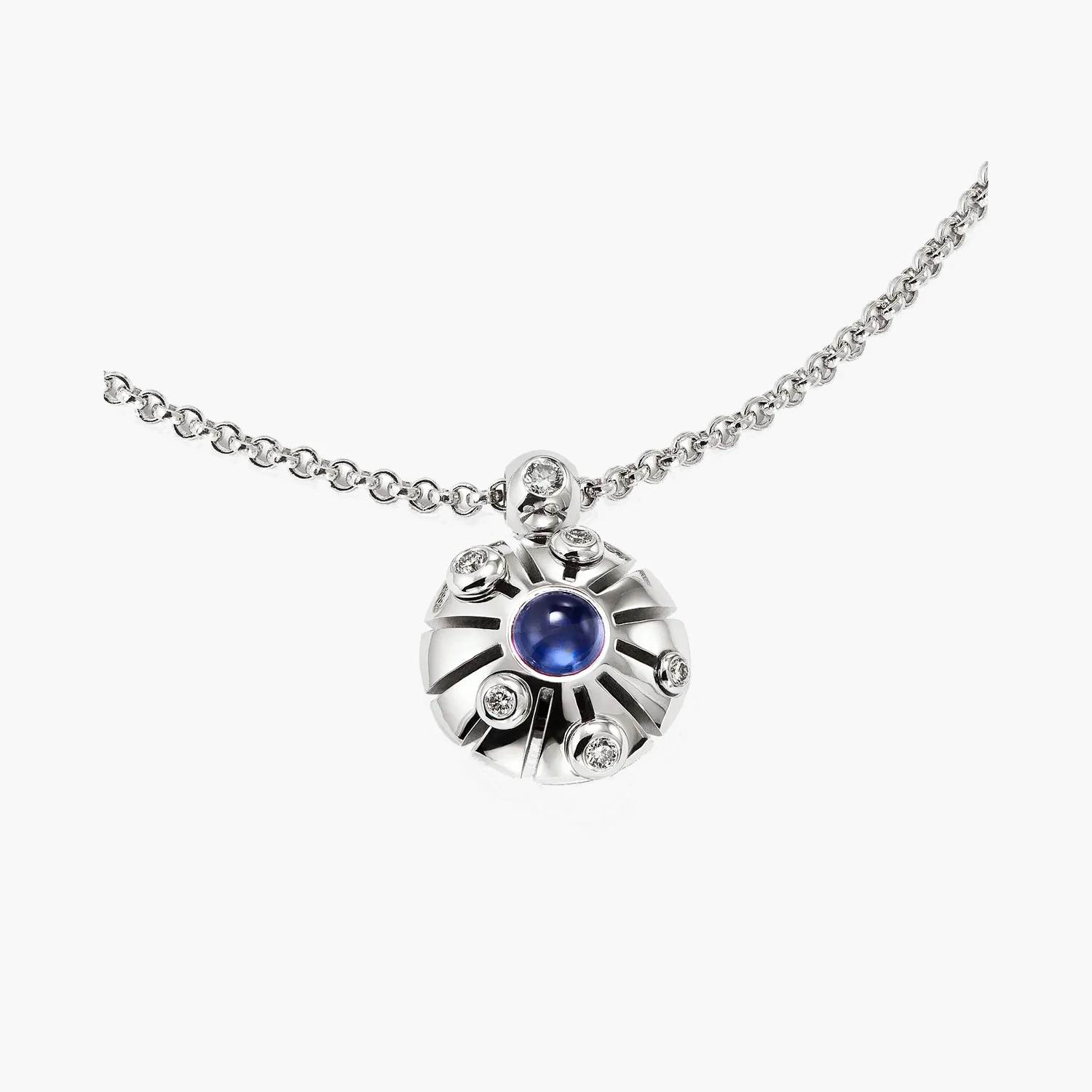 Decentní jas: Centrální kámen – modrý safír – je doplněn pouze jemnými diamanty, které jsou vsazeny tak, aby podtrhly jeho barvu, aniž by ho zastínily.